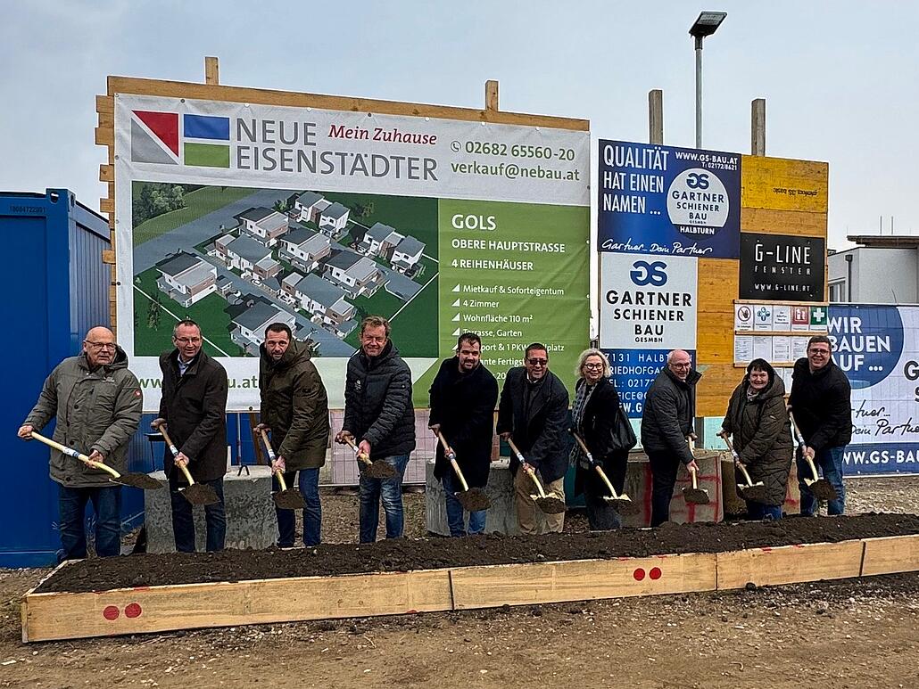 In der Oberen Hauptstraße fand am 19.11.2025 der feierliche Spatenstich für ein neues Wohnprojekt im Burgenland. Insgesamt entstehen hier 24 moderne Doppelhäuser, die in mehreren Bauphasen realisiert werden. Bereits fertiggestellt sind drei Doppelhäuser der ersten Bauphase. In der nächsten Bauetappe entstehen zwei weitere Doppelhäuser, jedes mit einer großzügigen Wohnfläche von rund 110 m². Neben moderner Architektur setzen wir auf Nachhaltigkeit. Alle Häuser sind mit einer Photovoltaik-Anlage ausgestattet und verfügen über zwei PKW-Stellplätze, bestehend aus einem Carport und einem zusätzlichen Freiplatz.Die Fertigstellung der ersten Bauphase ist für Frühjahr 2026 geplant. Mit diesem Projekt verbinden wir modernen Wohnkomfort mit ökologischer Verantwortung und schaffen Lebensraum, in dem sich Familien sofort zuhause fühlen können.