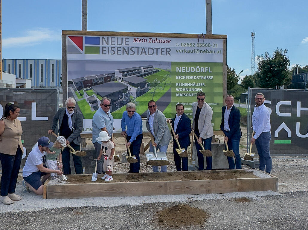 Am Dienstag, den 02. September 2025 hatten wir doppelten Grund zum Feiern in Neudörfl. In der Bickfordstraße erfolgte der Spatenstich für ein neues Wohnprojekt mit insgesamt 49 Einheiten, während in der Homogen-Siedlung 10 moderne Reihenhäuser offiziell an ihre neuen Eigentümerinnen und Eigentümer übergeben wurden.