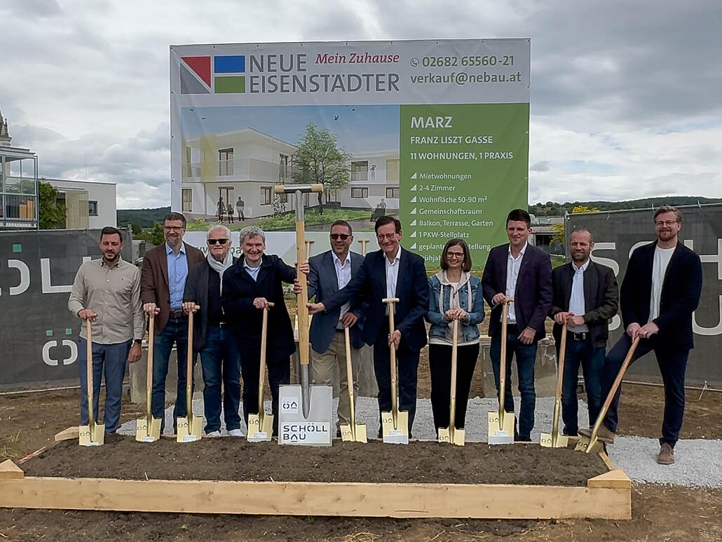 Mit dem offiziellen Spatenstich startete der zweite Bauabschnitt des Wohnprojekts in der Franz Liszt-Gasse in Marz. In enger Zusammenarbeit mit der Gemeinde entstehen elf moderne Mietwohnungen sowie eine Arzt- oder Therapiepraxis.